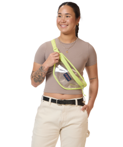 Our Clear collection lets you see all your stuff from the outside. The Clear Waistpack is perfectly sized for any concert or stadium venue. It features one main compartment and a crossbody strap that goes around your waist for easy wear.